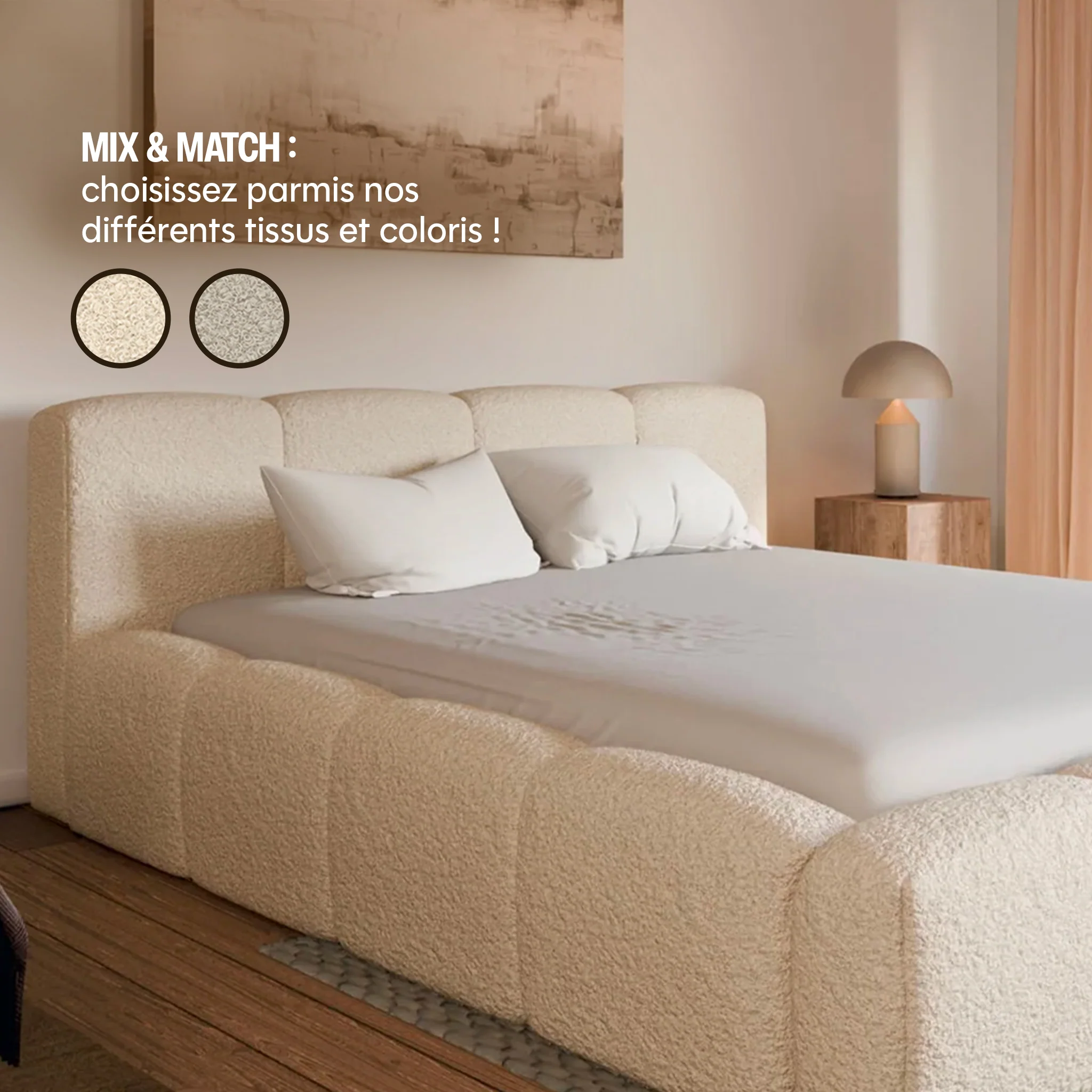 Transformez votre chambre en un espace chic et fonctionnel grâce à notre lit coffre en tissu bouclé. Plus qu’un simple lit, il devient une solution de rangement astucieuse avec un coffre spacieux, parfait pour organiser vos affaires sans compromis sur l’élégance. Son revêtement en tissu bouclé apporte une texture raffinée, tandis que sa conception robuste garantit un confort et une stabilité durables.